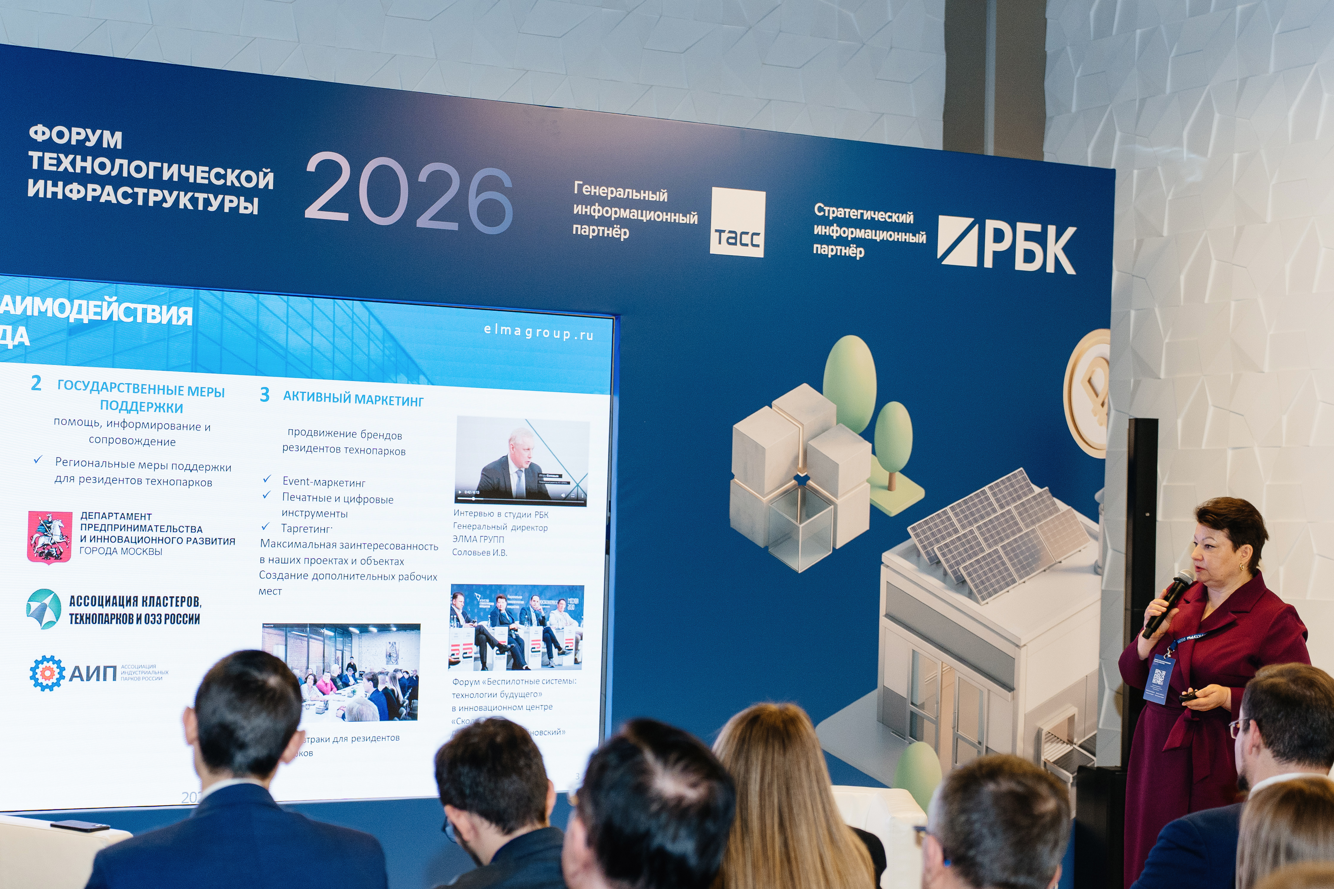19 марта 2026 года в кластере «Ломоносов», компания ЭЛМА ГРУПП приняла участие в ежегодном - «Форум технологической инфраструктуры», посвященному развитию технологического предпринимательства. Форум собрал более 1 500 участников, среди которых девелоперы, представители институтов развития, банков, консалтинговых агентств, а также органов власти.